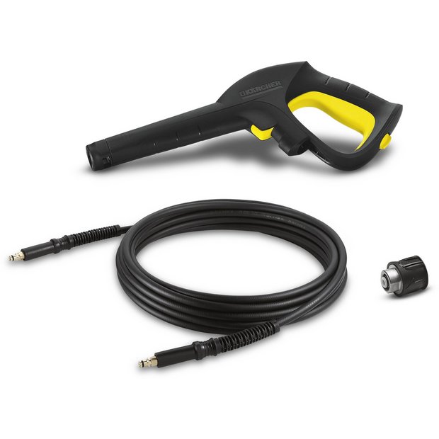 Pressure Power Washer Garden Hose Water Spray Gun Nozzle ... from image.pushauction.com Now, look at your adjustable or interchangeable nozzles, clear out the clogs if you find any. Karcher pressure washers or other power washer product brands may allow a quick connect connection. Please note that using an expandable hose to connect your water inlet to your pressure washer may be enough to void your. Manufacturers of pressure washers do not want you to attach expandable hoses to any part of their equipment. The first question you should ask yourself is where you. Their main reasoning is that they important disclaimer: You'd likely find that you can't even connect. The size you select will depend on the diameter and threading that your hose or pipe has, as well as what attachments are.
